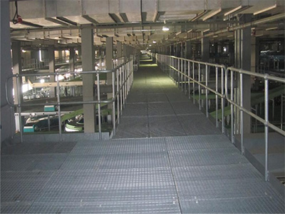 3、扁钢间距为60mm,横杆间距为50mm的钢格板是专为采矿业的应用而开发的品种,它解决了矿物溅落在板面上的难题,常指定用于采矿业的加工厂、转运站、破碎系统的板面。