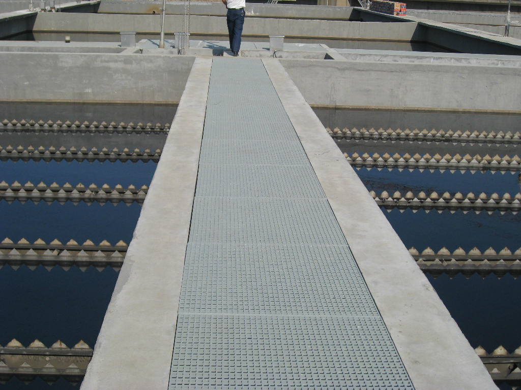 在与普通金属材料的对比上,玻璃钢格栅的重量减轻了四分之三,这样就大大降低了安装难度,作为支撑在设备上的操作平台非常合适。在满足安装设备的要求上,玻璃钢格栅可以采用弧线切割的办法就能很方便进行开孔,而且不会因开孔造成格栅力学性能的改变,也不会造成格栅的散落,是作为操作平台的理想材料。